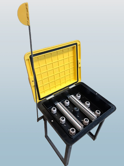 Муфта герметизированная универсальная композитная разветвительная РМГУ-К предназначена для установки малогабаритной аппаратуры рельсовых цепей, выполнения ответвлений от группового кабеля к светофорам, ящикам путевым, к стрелочным электроприводам и другим устройствам, а также для предохранения кабелей от атмосферных осадков и пыли