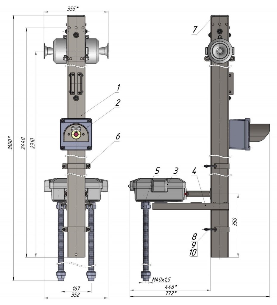 КОМПЛЕКС СОЕДИНИТЕЛЬНОЙ МУФТЫ И СТОЙКИ С ПКУ И РВП-220 ПОД ГРОМКОГОВОРИТЕЛИ НА ПРОЛЕТНОМ СТРОЕНИИ