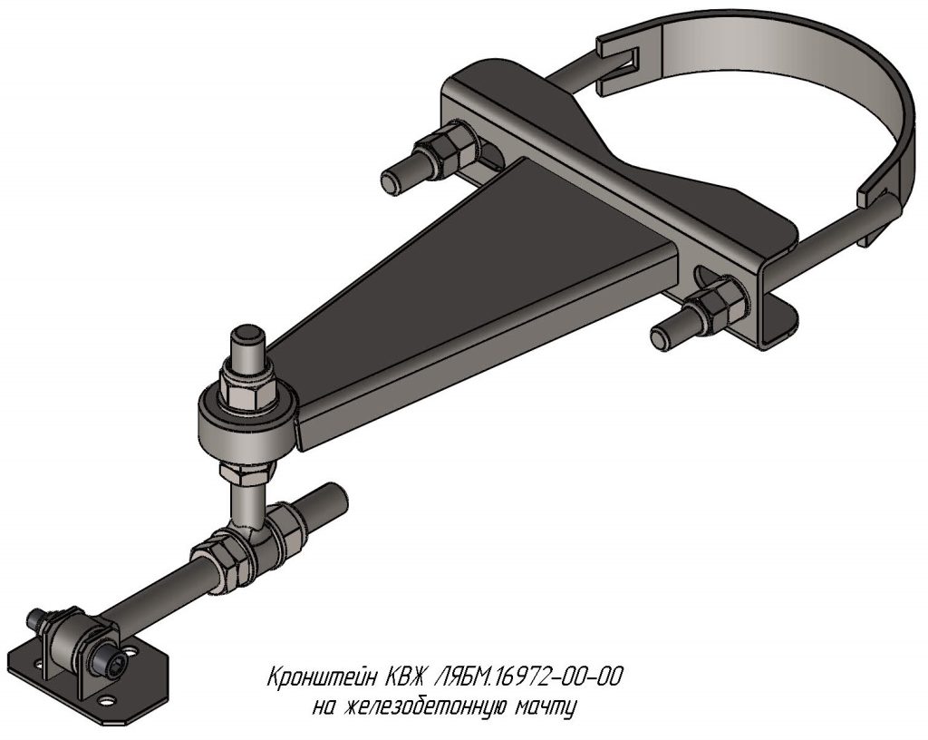 Кронштейн КВЖ ЛЯБМ.16972-00-00 представляет собой штампованную или штампо-сварную конструкцию с антикоррозийным защитным покрытием, предназначенную для установки мачтовых светофоров на станциях и перегонах.