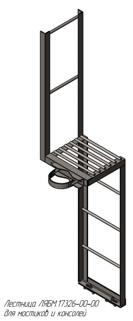 Лестница для мостиков и консолей ЛЯБМ.17326-00-00 представляет собой штампованную или штампо-сварную конструкцию с антикоррозийным защитным покрытием, предназначенную для установки мачтовых светофоров на мостиках и консолях.