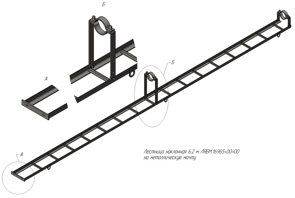 Лестница наклонная 6,2м ЛЯБМ.16965-00-00 представляет собой штампованную или штампо-сварную конструкцию с антикоррозийным защитным покрытием, предназначенную для установки мачтовых светофоров на станциях и перегонах.